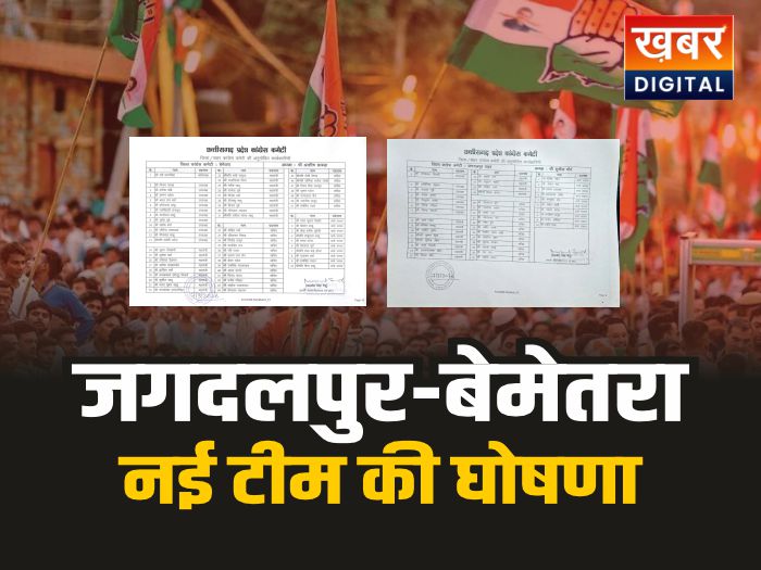 CG Congress : छत्तीसगढ़ में संगठन को मजबूत करने के उद्देश्य से कांग्रेस पार्टी ने जगदलपुर सिटी और बेमेतरा जिला कांग्रेस कमेटी की नई कार्यकारिणी की घोषणा कर दी है। प्रदेश कांग्रेस अध्यक्ष दीपक बैज की मंजूरी के बाद दोनों जिलों की नई टीम को अंतिम रूप दिया गया है।
