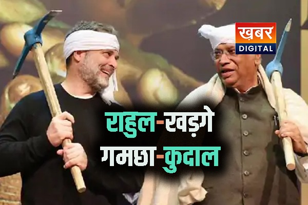 नई दिल्ली/ कांग्रेस अध्यक्ष मल्लिकार्जुन खरगे और लोकसभा में नेता प्रतिपक्ष राहुल गांधी ने गुरुवार को केंद्र सरकार पर तीखा हमला बोला। ‘मनरेगा बचाओ सम्मेलन’ के दौरान दोनों नेता मजदूरों की वेशभूषा में नजर आए। माथे पर गमछा बांधे और हाथों में फावड़ा लिए राहुल गांधी और खरगे ने मनरेगा को खत्म करने के कथित प्रयासों के खिलाफ जोरदार विरोध दर्ज कराया।
