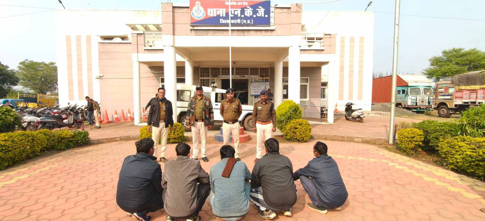 एन.के.जे. पुलिस की बड़ी कार्रवाई: जनसुविधा केंद्र में जुआ खेलते 5 आरोपी गिरफ्तार, 1.90 लाख का मशरुका जब्त