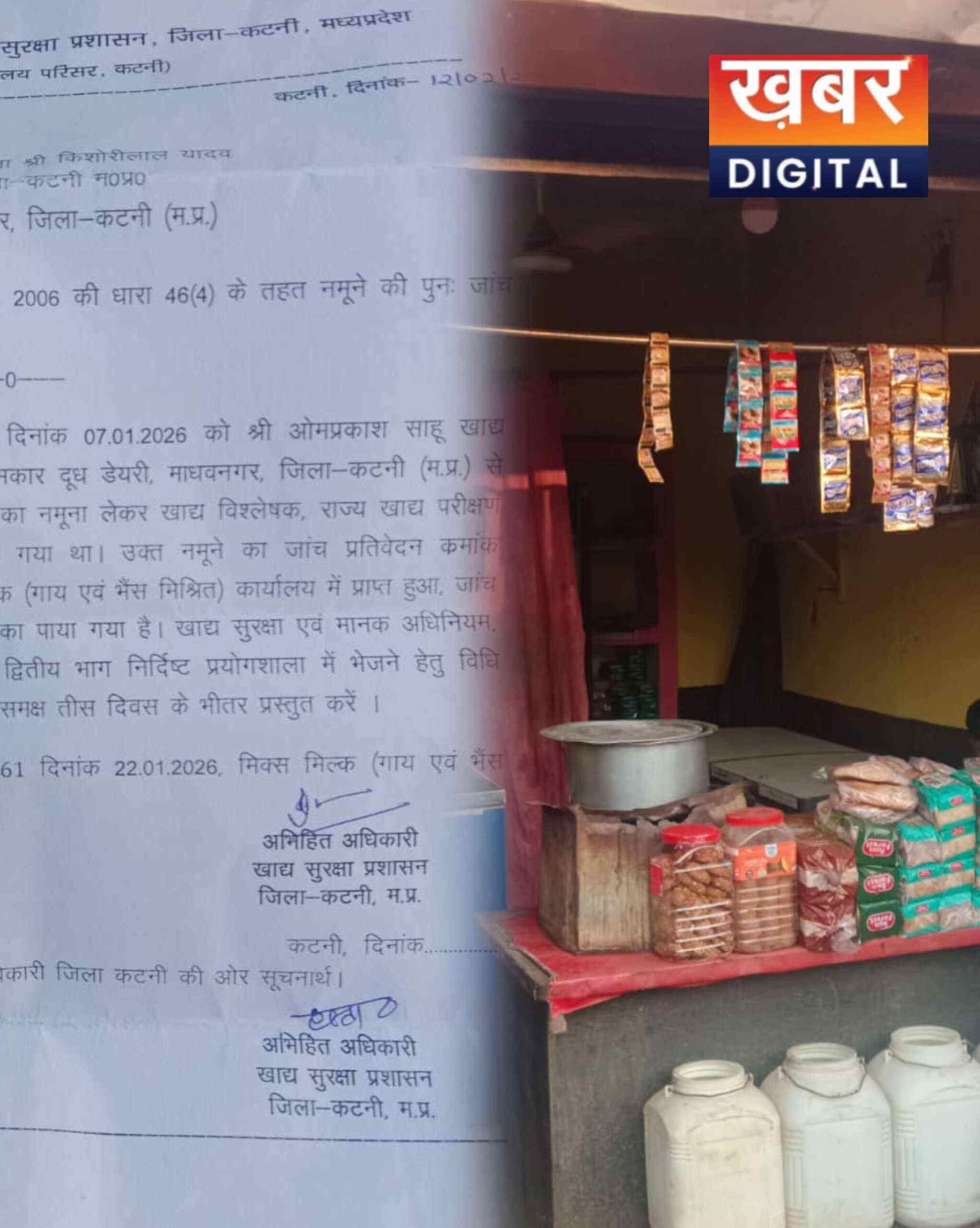 सौरभ श्रीवास्तव संवाददाता कटनी— माधवनगर स्थित ओमकार दूध डेयरी से लिए गए मिक्स मिल्क (गाय एवं भैंस मिश्रित) के नमूने को लेकर विवाद खड़ा हो गया है। खाद्य सुरक्षा विभाग द्वारा भेजी गई जांच रिपोर्ट में दूध का नमूना अवमानक स्तर का पाया गया है, जिसके बाद डेयरी संचालक को नोटिस जारी किया गया है।जानकारी के अनुसार 7 जनवरी 2026 को खाद्य सुरक्षा अधिकारी द्वारा डेयरी से दूध का नमूना लिया गया था, जिसे जांच के लिए राज्य खाद्य परीक्षण प्रयोगशाला भोपाल भेजा गया था। 22 जनवरी को आई रिपोर्ट में नमूना मानकों पर खरा नहीं पाया गया।हालांकि डेयरी संचालक ओमकार यादव ने रिपोर्ट पर सवाल उठाते हुए कहा है कि उनका दूध पूरी तरह शुद्ध है और वे नियमानुसार नमूने की दोबारा जांच कराएंगे। खाद्य सुरक्षा एवं मानक अधिनियम 2006 की धारा 46(4) के तहत उन्हें 30 दिनों के भीतर अपील कर नमूने का दूसरा भाग पुनः परीक्षण के लिए भेजने का अधिकार है।अब देखना होगा कि दोबारा जांच में दूध की गुणवत्ता को लेकर क्या सच्चाई सामने आती है।