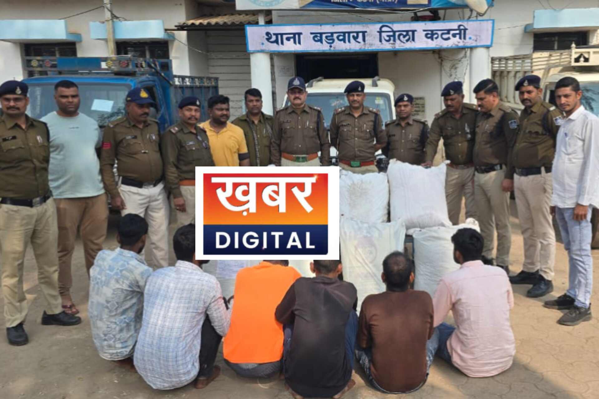 खबर डिजिटल कटनी– जिले के बड़वारा थाना क्षेत्र में पुलिस ने अवैध मादक पदार्थ तस्करी के खिलाफ बड़ी कार्रवाई करते हुए दो पिकअप वाहन और एक स्कॉर्पियो से गांजा की भारी खेप जब्त की है। पुलिस ने मौके से छह आरोपियों को गिरफ्तार कर 133.93 किलोग्राम गांजा बरामद किया है, जिसकी अनुमानित कीमत करीब 50 लाख रुपये बताई जा रही है।पुलिस अधीक्षक अभिनय विश्वकर्मा के निर्देश पर जिले में अवैध मादक पदार्थों की तस्करी पर रोक लगाने के लिए विशेष अभियान चलाया जा रहा है। इसी क्रम में अतिरिक्त पुलिस अधीक्षक संतोष डेहरिया के मार्गदर्शन में बड़वारा पुलिस द्वारा मुखबिर तंत्र को सक्रिय किया गया।दिनांक 18 जनवरी 2026 को पुलिस टीम देहात भ्रमण पर थी। इसी दौरान ग्राम मिडरा के जंगल क्षेत्र में दो पिकअप वाहन एवं एक स्कॉर्पियो वाहन संदिग्ध अवस्था में खड़े दिखाई दिए। पुलिस ने तत्काल घेराबंदी कर वाहनों को रोका और विधिवत तलाशी ली।तलाशी के दौरान पिकअप वाहन क्रमांक BR-24 GC-5729, UP-64 BT-3360 एवं स्कॉर्पियो वाहन क्रमांक CG-15 EJ-0814 से गांजा से भरी बोरियां बरामद की गईं। मौके से कुल 133.93 किलो गांजा जप्त किया गया।पुलिस ने मामले में प्रिस केशनी (19), धनजी कुमार सोनी (24), संजय दास (23), रेडम पारधी (40), राजन सोनी (28) एवं राहुल सोनी (20) को गिरफ्तार किया है, जो छत्तीसगढ़, बिहार और मध्यप्रदेश के निवासी बताए गए हैं।सभी आरोपियों के खिलाफ धारा 8/20 एनडीपीएस एक्ट के तहत मामला दर्ज कर लिया गया है। पुलिस गांजा की सप्लाई चेन और इसके नेटवर्क को लेकर आरोपियों से पूछताछ कर रही है।विशेष भूमिकाइस कार्रवाई में थाना प्रभारी उनि. कृष्ण कुमार पटेल, उनि. प्रदीप कुमार जाटव, सउनि रघुवीर सिंह, सउनि रामनाथ साकेत, सउनि विक्रम सिंह, प्रधान आरक्षक पवनराज सहित आरक्षक सुरेन्द्र सिंह, गौरीशंकर राजपूत, शिवप्रकाश तिवारी एवं बृजलाल प्रजापति की विशेष भूमिका रही।“Barwara Police Seize 133.93 Kg Ganja from Two Pickups and a Scorpio, Six Arrested”