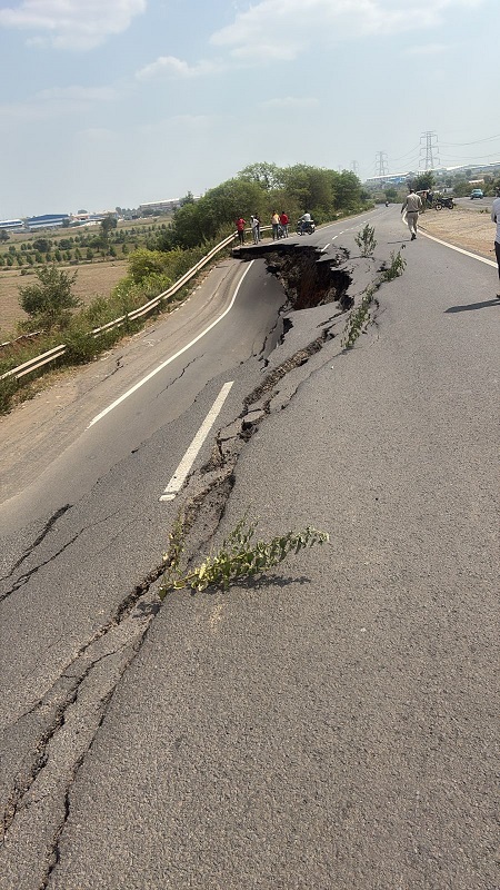 भरी दोपहर धंसी सड़क