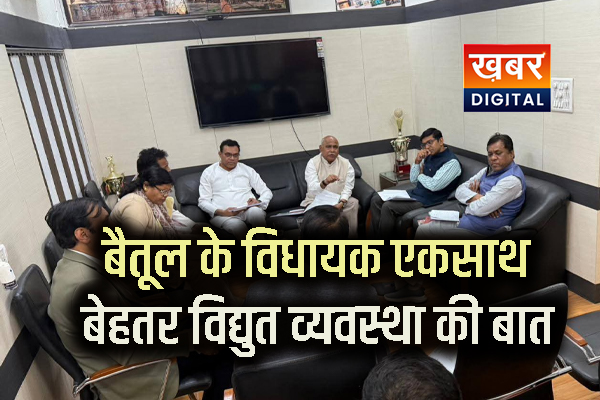 बैतूल/सचिन जैन/खबर डिजिटल/ बैतूल जिले की बिजली व्यवस्था और अधिक बेहतर बनाने के लिए शुक्रवार को मप्र म.क्षे.वि.वि.कं.लि. के मुख्यालय भोपाल में महत्वपूर्ण बैठक आयोजित की गई। बैठक में बीजेपी प्रदेश अध्यक्ष और बैतूल विधायक हेमंत खण्डेलवाल, आमला विधायक डॉ.योगेश पंडाग्रे, घोड़ाडोंगरी विधायक श्रीमती गंगा बाई उईके, मुलताई विधायक चन्द्रशेखर देशमुख और भैंसदेही विधायक महेन्द्र सिंह चौहान सहित प्रबंध संचालक क्षितिज सिंघल, मुख्य महाप्रबंधक (भो.क्षे.) भोपाल बी.बी.एस. परिहार, बैतूल वृत्त के महाप्रबंधक भूपेन्द्र सिंह बघेल, उपमहाप्रबंधक अभय गोप, योगेन्द्र चौधरी एवं हितेश वशिष्ठ उपस्थित थे।