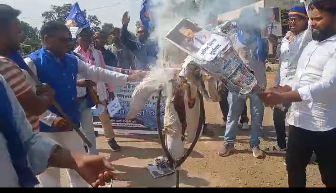 भीम आर्मी ने अनिल मिश्रा का पुतला फूंका, सख्त कार्रवाई की मांग