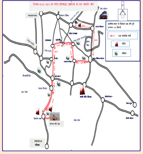 - जुलूस मंगलवारा पहुँचने पर सेन्ट्रल लाइब्रेरी व छावनी रोड से इतवारा की ओर वाहनों का प्रवेश बंद रहेगा।