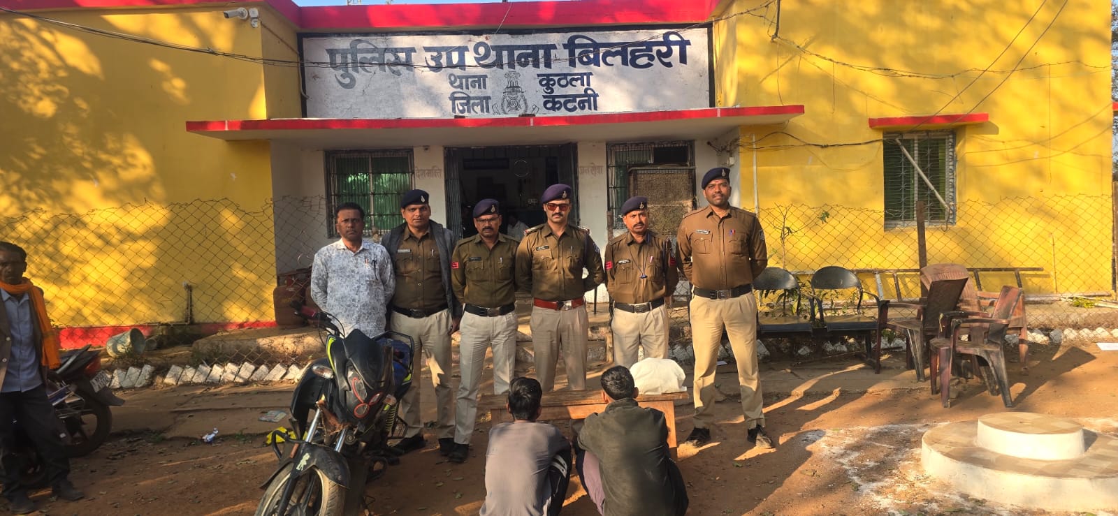 कटनी।पुलिस अधीक्षक कटनी अभिनय विश्वकर्मा के निर्देशानुसार जिले में मादक पदार्थों के विरुद्ध सख्त अभियान चलाया जा रहा है। इसी क्रम में अतिरिक्त पुलिस अधीक्षक संतोष डेहरिया एवं नगर पुलिस अधीक्षक नेहा पच्चीसिया के मार्गदर्शन तथा थाना प्रभारी कुठला निरीक्षक राजेंद्र मिश्रा के नेतृत्व में बिलहरी पुलिस को बड़ी सफलता हाथ लगी है।क्षेत्र भ्रमण के दौरान चौकी प्रभारी बिलहरी उप निरीक्षक सुयश पाण्डेय व हमराह स्टाफ को बिलहरी–चिखला रोड पहाड़ी के पास सड़क किनारे एक मोटरसाइकिल पर दो युवक संदिग्ध अवस्था में खड़े दिखाई दिए। मोटरसाइकिल पर आगे बैठे व्यक्ति के पास काले-सफेद रंग का पिट्ठू बैग टंगा हुआ था। पुलिस को देखकर दोनों युवक भागने का प्रयास करने लगे, जिन्हें मौके पर ही घेराबंदी कर वैधानिक प्रक्रिया का पालन करते हुए रोक लिया गया।पूछताछ में आरोपियों ने अपने नाम1. कयामत सिंह पिता मिनश्री लाल बहेलिया (उम्र 23 वर्ष)2. रहमत सिंह उर्फ आर्यन पिता इलेज सिंह (उम्र 19 वर्ष)दोनों निवासी ग्राम कुपना, थाना शाहनगर, जिला पन्ना बताए।पिट्ठू बैग के संबंध में संतोषजनक जवाब न देने पर संदेह के आधार पर बैग की तलाशी ली गई, जिसमें दो किलोग्राम अवैध मादक पदार्थ गांजा बरामद हुआ। पुलिस ने आरोपियों के कब्जे से गांजा एवं मोटरसाइकिल क्रमांक MP 35 ML 8148 को जप्त किया।आरोपियों के विरुद्ध एनडीपीएस एक्ट के तहत प्रकरण पंजीबद्ध कर उन्हें गिरफ्तार कर न्यायालय में प्रस्तुत किया गया, जहां से उन्हें जेल भेज दिया गया।सराहनीय भूमिकाइस संपूर्ण कार्रवाई में थाना प्रभारी कुठला निरीक्षक राजेंद्र मिश्रा, चौकी प्रभारी बिलहरी उप निरीक्षक सुयश पाण्डेय, प्रधान आरक्षक धर्मेंद्र यादव, भरत विश्वकर्मा, आरक्षक लव उपाध्याय, संदीप भलावी एवं सैनिक धनेंद्र त्रिपाठी का सराहनीय भूमिका रही