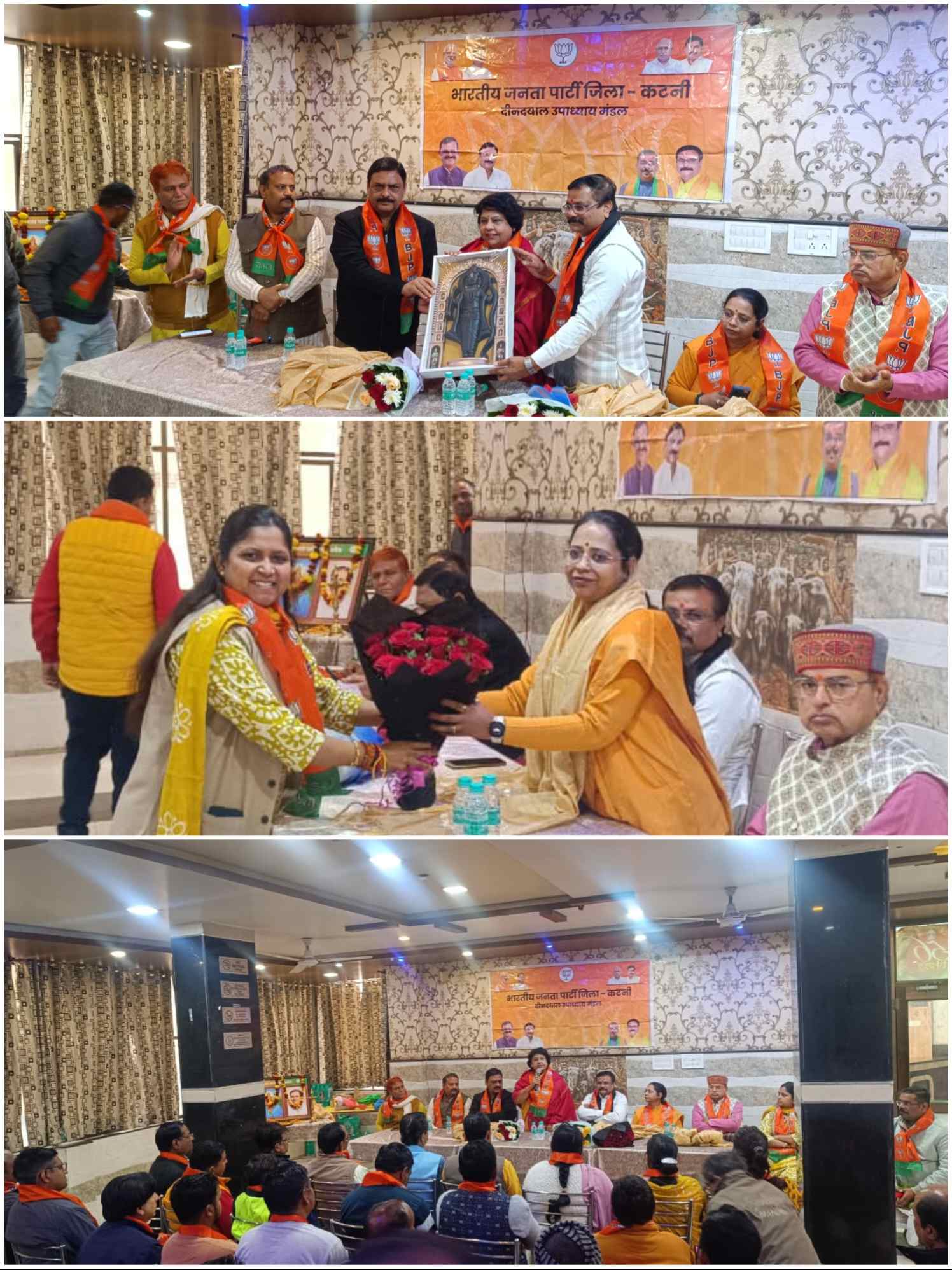 खबर डिजिटल कटनी— भारतीय जनता पार्टी की राष्ट्रीय मंत्री डॉ. अलका गुर्जर गुरुवार को कटनी प्रवास पर रहीं। कटनी आगमन पर भाजपा जिलाध्यक्ष श्री दीपक टण्डन के नेतृत्व में पार्टी कार्यकर्ताओं ने उनका भव्य स्वागत किया। इसके पश्चात पंडित दीनदयाल उपाध्याय मंडल अंतर्गत शक्तिकेन्द्र संयोजकों एवं बूथ अध्यक्षों की महत्वपूर्ण बैठक का आयोजन किया गया।होटल ब्रजवासी में आयोजित बैठक को संबोधित करते हुए डॉ. अलका गुर्जर ने कहा कि बूथ स्तर के कार्यकर्ता ही पार्टी की रीढ़ होते हैं। उन्होंने कार्यकर्ताओं से संगठन और जनता के बीच सेतु बनकर कार्य करने का आह्वान किया। साथ ही चल रहे SIR अभियान में पूरी सतर्कता के साथ पात्र एवं अपात्र मतदाताओं की जानकारी एकत्र कर सहयोग करने की अपील की।इस अवसर पर मुड़वारा विधायक श्री संदीप जायसवाल ने कहा कि डॉ. अलका गुर्जर का मार्गदर्शन कार्यकर्ताओं के लिए प्रेरणास्रोत है और उनका सानिध्य संगठन को नई ऊर्जा देता है। भाजपा जिलाध्यक्ष श्री दीपक टण्डन ने कहा कि राष्ट्रीय मंत्री का बूथ स्तर के कार्यकर्ताओं से सीधा संवाद भाजपा संगठन की शक्ति और सुदृढ़ता को दर्शाता है।प्रदेश कार्यसमिति सदस्य श्रीमती प्रज्ञा त्रिपाठी ने भी कार्यकर्ताओं को संगठनात्मक मजबूती और समर्पण भाव से कार्य करने का संदेश दिया। कार्यक्रम में पिछड़ा मोर्चा के प्रदेश उपाध्यक्ष श्री सुरेश सोनी, जिला उपाध्यक्ष श्री सुनील उपाध्याय, श्री रवि खरे, सुश्री अंकिता तिवारी, श्री आशीष गुप्ता बाबा सहित अनेक पदाधिकारी मंचासीन रहे।बैठक का शुभारंभ भारत माता, पंडित दीनदयाल उपाध्याय एवं डॉ. श्यामा प्रसाद मुखर्जी के चित्र के समक्ष दीप प्रज्वलन कर किया गया। बैठक का संचालन मंडल अध्यक्ष श्री रजत जैन ने किया, जबकि आभार प्रदर्शन विधायक श्री संदीप जायसवाल द्वारा किया गया।इस अवसर पर जिला मंत्री श्री मनीष दुबे, जिला कार्यालय मंत्री श्री अम्बरीष वर्मा, जिला मीडिया प्रभारी श्री आशुतोष शुक्ला, सह कार्यालय मंत्री श्री यज्ञदत्त मिश्रा, पार्षद श्रीमती बीना बैनर्जी, SIR संयोजक श्री विजय गुप्ता सहित बड़ी संख्या में भाजपा कार्यकर्ता उपस्थित रहे।