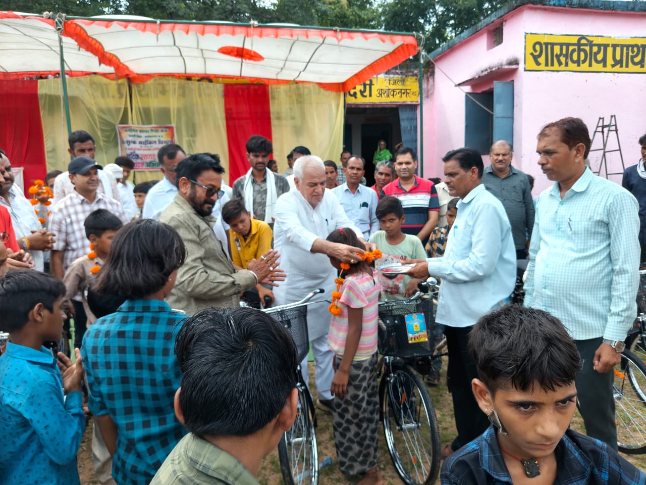 चंदेरी/ खबर डिजिटल: राज्य शासन की योजना के अनुसार विकासखंड चंदेरी अंतर्गत विद्यालयों में अध्यनरत कक्षा 6 और 9 के पात्र छात्र छात्राओं को निशुल्क साइकिलों का वितरण विधायक जगन्नाथ सिंह जी रघुवंशी के द्वारा विकास खण्ड स्तरीय समारोह के दौरान किया गयाl इस दौरान विद्यालय प्रांगण हरकुंड में साइकिल वितरण मेला आयोजित किया गयाl