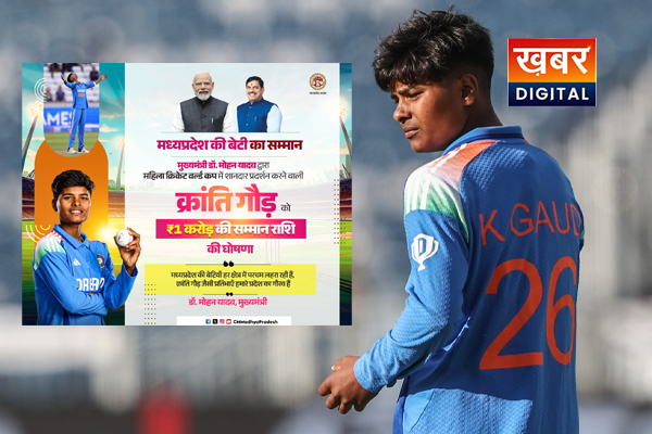 भोपाल/सुनील बंशीवाल/खबर डिजिटल/ मध्यप्रदेश के छतरपुर की बेटी क्रांति गौड़ ने वीमेंस वर्ल्ड कप में शानदार प्रदर्शन कर प्रदेश का मान ऊंचा किया है। वर्ल्ड कप फाइनल की जीत में उन्होंने अहम भूमिका अदा की। क्रांति ने प्रदेश के साथ-साथ देश का नाम पूरी दुनिया में रोशन किया है। जबकि वो किसी सक्षम परिवार से ताल्लुक नहीं रखती, फिर भी कड़ी मेहनत के दम पर ऊंचा मुकाम हासिल किया और तिरंगा की शान को और ऊंचा करने में महती भूमिका अदा की। क्रांति गौड़ की सफलता पर सीएम डॉ. मोहन यादव ने इनाम की घोषणा की है।