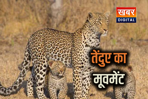दो शावकों के साथ तेंदुए का मूवमेंट