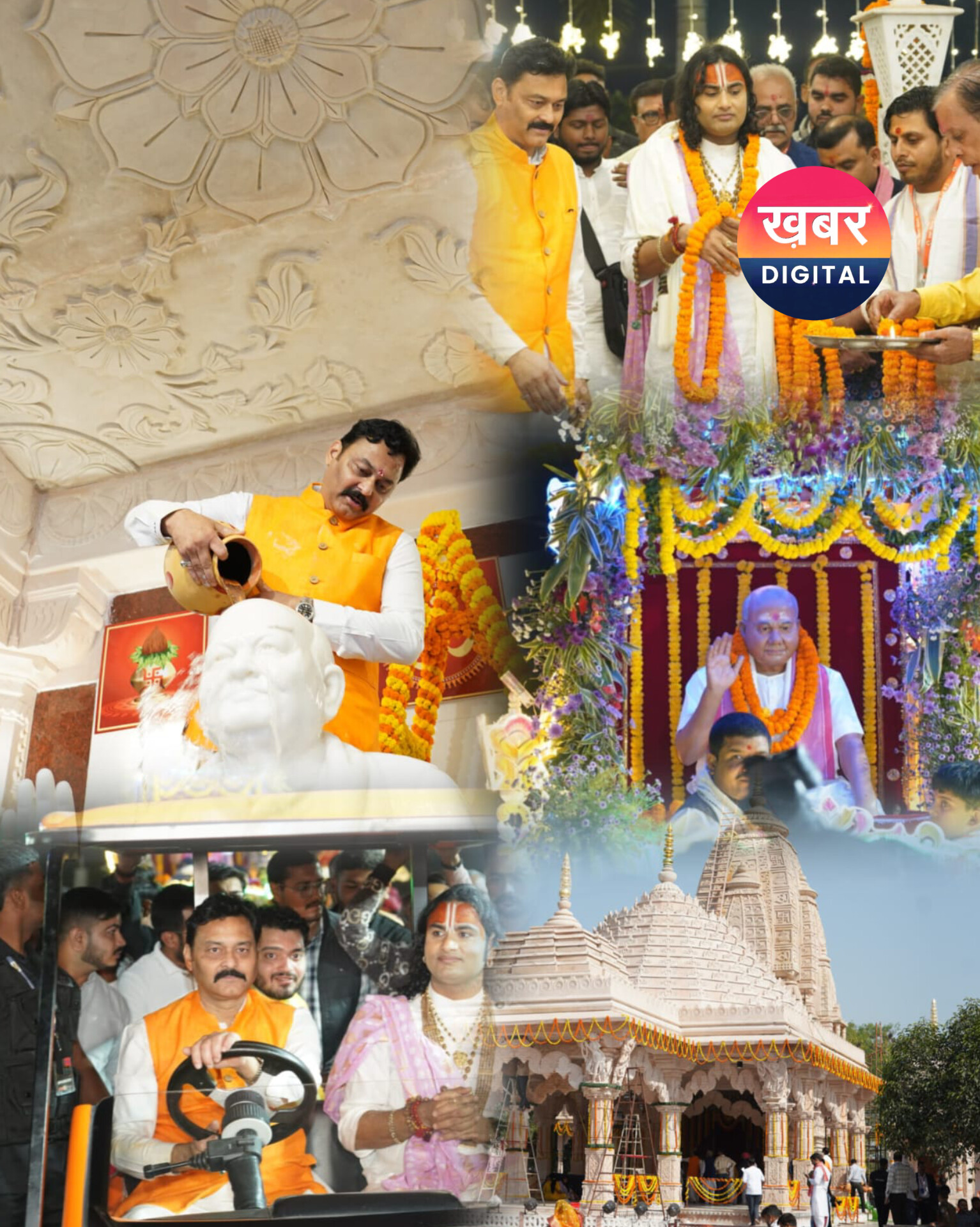 खबर डिजिटल/कटनी न्यूज़ – दद्दा धाम परिसर में प्राचीन नागर शिला मंदिर शैली पर निर्मित परम पूज्य गुरुदेव पं. देवप्रभाकर शास्त्री दद्दाजी के नवनिर्मित मंदिर में तीन दिवसीय प्राण प्रतिष्ठा महोत्सव का दूसरा चरण सोमवार को पूर्ण विधि-विधान के साथ सम्पन्न हुआ।देशभर से आए 31 आचार्यों ने पंडित पूरनलाल शास्त्री एवं पंडित कालिका प्रसाद पांडे के निर्देशन में वैदिक मंत्रोच्चार और शंखध्वनि के साथ सप्तपवित्र नदियों से लाए जल से जलाभिषेक कराया। इसके बाद चंदन लेपन, वस्त्र धारण और पगड़ी-अंगौछा पहनाकर देव विग्रह की प्रतिष्ठा सम्पन्न की गई। इस अवसर पर गुरुशिष्य संजय पाठक, आशुतोष राणा, डॉ. अनिल त्रिपाठी, डॉ. सुनील त्रिपाठी, पंडित नीरज त्रिपाठी और यश पाठक ने मिलकर राजभोग अर्पित किया।मंदिर परिसर में वैदिक मंत्रों की ध्वनि, शंखनाद और आचार्यों के स्वर से वातावरण पूरी तरह आध्यात्मिक रंग में रंग गया। इसी क्रम में मंदिर के शिखर पर 15 फीट ऊँची धर्म ध्वजा फहराई गई। ध्वज दंड पूजन का यजमान संजय पाठक को बनाया गया।सुबह से ही श्रद्धालुजन पंडाल में उमड़ पड़े। हजारों श्रद्धालुओं ने पार्थिव शिवलिंगों का निर्माण किया और आचार्यों द्वारा सामूहिक रुद्राभिषेक कराया गया।दद्दा धाम में चल रहे इस महोत्सव के तहत आज से अमृतमयी कथा का शुभारंभ हुआ, जिसमें वृंदावन के प्रसिद्ध कथावाचक अनिरुद्धाचार्य महाराज और इंद्रेश जी महाराज कथा का वाचन करेंगे। कथा प्रारंभ से पूर्व निकाली गई शोभायात्रा में हजारों श्रद्धालु शामिल हुए। रास्ते भर कथा वाचक का स्वागत फूलों की वर्षा और आरती उतारकर किया गया।इस अवसर पर अनिरुद्धाचार्य महाराज ने दद्दाजी की समाधि स्थल पर पहुंचकर उन्हें महान संत बताते हुए आशीर्वाद प्राप्त किया। दिनभर भजन-संध्या का आयोजन चलता रहा, जिसमें भक्ति रस की धारा बहती रही।दद्दा धाम में जारी यह धार्मिक महोत्सव प्रतिदिन आस्था और श्रद्धा का नया अध्याय रच रहा है।