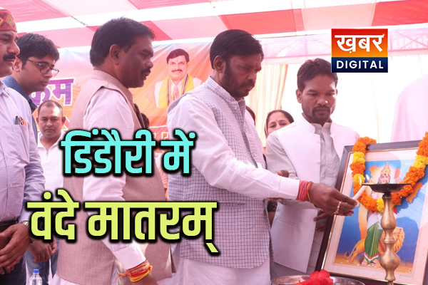 डिंडौरी/शैलेश नामदेव/खबर डिजिटल/ राष्ट्रगीत “वंदे मातरम” के 150 वर्ष पूर्ण होने के उपलक्ष्य में जिला प्रशासन के द्वारा मुख्यालय डिंडौरी के कलेक्ट्रेट प्रांगण में भव्य आयोजन सम्पन्न कराया गया। वंदे मातरम के 150 वर्ष पूर्ण होने के अवसर पर 7 नवम्बर 2025 से 7 नवम्बर 2026 तक जिले में चार चरणों में विविध कार्यक्रम आयोजित किए जाएंगे। शासन के निर्देशानुसार कलेक्टर अंजू पवन भदौरिया के मार्गदर्शन में प्रथम चरण में राष्ट्रगीत “वंदे मातरम” भव्य समारोह का आयोजन किया गया। मुख्य अतिथियों का फूलमाला एवं बेंच लगाकर स्वागत किया गया।