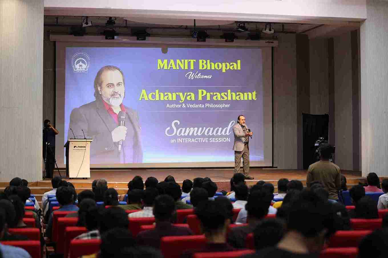 राज्य के शीर्ष इंजीनियरिंग कॉलेज — मौलाना आज़ाद राष्ट्रीय प्रोद्योगिकी संस्थान (मैनिट) में हुए मुख्य व्याख्यान में आचार्य प्रशांत ने कहा, “भगवद्गीता कोई पुरातन धार्मिक ग्रंथ नहीं, बल्कि आज के हर व्यक्ति के भीतर चल रही लड़ाई का समाधान है। अर्जुन की दुविधा वही है जो आज के युवा के भीतर है—कर्तव्यों को लेकर भ्रम, भय और असमंजस।” उन्होंने आत्मज्ञान को जीवन का केंद्रीय बिंदु बताया और कहा कि जब तक व्यक्ति स्वयं को नहीं जानता, तब तक शिक्षा और तकनीकी ज्ञान अधूरा रहता है।“जीवन का उद्देश्य केवल नौकरी या सफलता नहीं है, बल्कि खुद को जानना और संतुलित व सजग जीवन जीना है।”