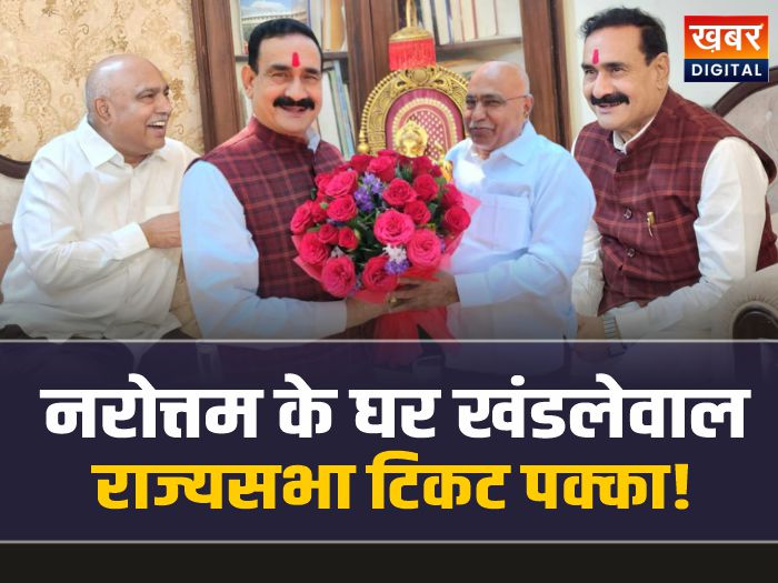 MP Rajyasabha Election: मध्य प्रदेश के सियासी गलियारों में एक बार फिर पूर्व गृहमंत्री डॉ. नरोत्तम मिश्रा के नाम की चर्चा जोरों पर है। मंगलवार को भाजपा प्रदेश अध्यक्ष हेमंत खंडेलवाल पूर्व गृहमंत्री नरोत्तम मिश्रा के निवास पर पहुंचे और बंद कमरे में हुई लंबी चर्चा ने नई अटकलों को जन्म दे दिया है। चर्चा है कि भाजपा हाईकमान नरोत्तम मिश्रा को राज्यसभा भेजकर उन्हें फिर से मुख्यधारा की राजनीति में सक्रिय करने का मन बना रहा है।