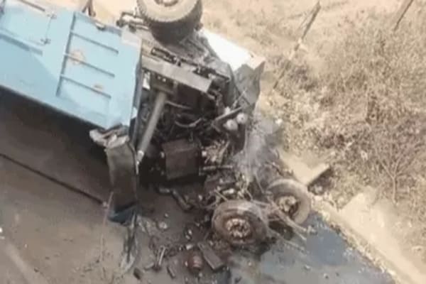 जबलपुर में ओवरब्रिज से गिरा हाईवा, ड्राइवर और बाइक सवार की मौत, 5 घायल, ईलाज जारी
