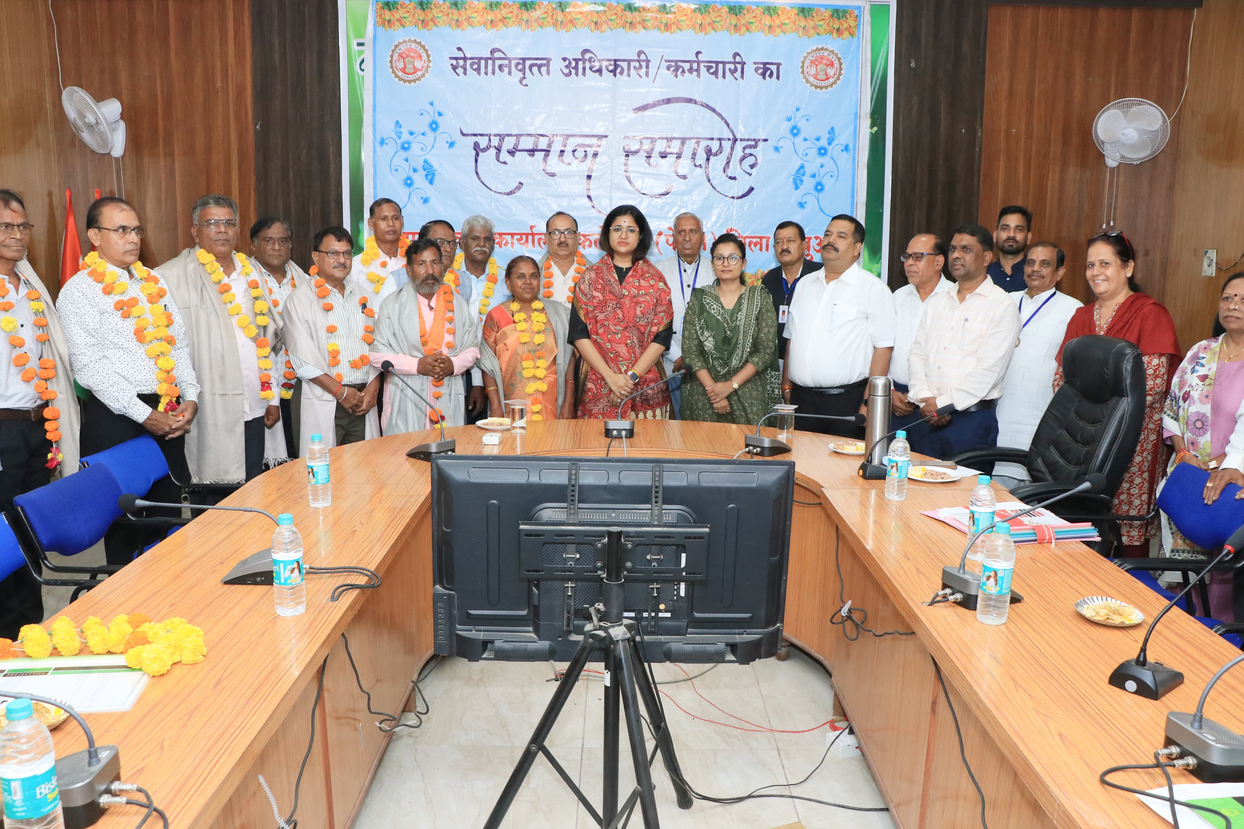 कलेक्टर ने जुलाई 2025 में सेवानिवृत्त हुए अधिकारियों और कर्मचारियों को पुष्पमाला एवं शॉल भेंट कर सम्मानित किया और आवश्यक स्वत्व दस्तावेज (पीपीओ/जीपीओ) प्रदान किए। अपने उद्बोधन में उन्होंने कहा कि सेवाकाल का अनुभव समाज और परिवार के उत्थान में लगाना चाहिए तथा आने वाले जीवन के लिए शुभकामनाएं दीं।