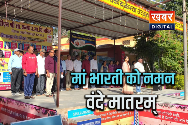 अलीराजपुर-जोबट/संजय वाणी/खबर डिजिटल/ नगर परिषद जोबट की तरफ से कन्या उच्चतर माध्यमिक विद्यालय जोबट परिसर में ‘वंदे मातरम’ कार्यक्रम का भव्य आयोजन किया गया, कार्यक्रम में नगर के जनप्रतिनिधि, अधिकारी-कर्मचारी, समाजसेवी, पत्रकार, स्कूली विद्यार्थी एवं बड़ी संख्या में नगरवासी शामिल हुए, कन्या उच्चतर माध्यमिक विद्यालय जोबट आयोजन स्थल को आकर्षक रूप से सजाया गया था, त्रिवर्ण ध्वज, पुष्पमालाएँ और देशभक्ति के नारों से पूरा वातावरण उत्साह और गर्व से भर गया।