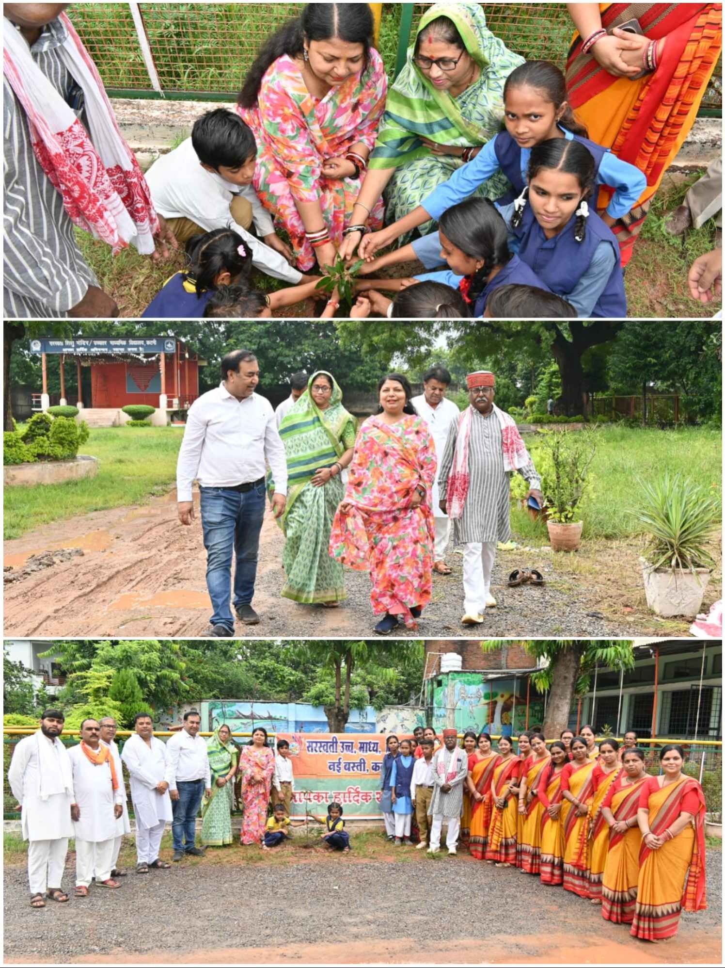 सरस्वती उच्चतर माध्यमिक विद्यालय नई बस्ती में महापौर ने छात्रों के साथ किया पौधारोपण