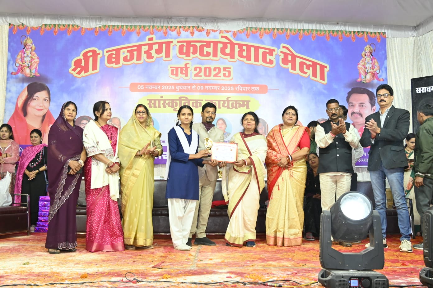 खबर डिजिटल/कटनी न्यूज़ -नगर निगम कटनी द्वारा श्री बजरंग कटायेघाट मेला 5 नवंबर से आयोजित किया जा रहा है। जिसका आज रविवार 9 नवंबर को उत्साह एवं हर्षोल्लास के साथ समापन किया गया। पांच दिवसीय मेला के अंतिम दिवस रविवार को विभिन्न स्कूलों के बच्चों के गायन, नृत्य फैंसी ड्रेस प्रतियोगिता के साथ ही रोचक इनामी दंगल प्रतियोगिता का भी आयोजन किया गया जिसका मेले में पहुंचे लोगों ने जमकर लुत्फ उठाकर कार्यक्रमों की सराहना की।महापौर श्रीमती प्रीति संजीव सूरी और निगमायुक्त सुश्री तपस्या परिहार के निर्देशन में इस वर्ष आयोजित मेले को आधुनिक साज सज्जा के साथ भव्य स्वरूप प्रदान करते हुए प्रत्येक दिवस विज्ञान प्रदर्शनी, एकल गायन, एकल एवं सामूहिक नृत्य प्रतियोगिता, फेंसी ड्रेस, निबंध प्रतियोगिता, सामूहिक नृत्य, दंगल, कबड्डी, खोखो, वॉलीबॉल,दंगल के साथ ही प्रेरणादाई एवं सामाजिक संदेश प्रसारित करती फिल्मों निल बटे सन्नाटा, आई एम कलाम, सुंदरकांड, कृष्ण लीला, दिवाली नृत्य, आदि कार्यक्रम आयोजित किए गए। मेले में शहर तथा ग्रामीण दुकानदारों द्धारा लगाई गई दुकानें एवं अजमेर से आए झूले बच्चों का आकर्षण का केन्द्र बना रहा।*महापौर एवं जनप्रतिनिधियों ने विजेता प्रतिभागियों को किया पुरस्कृत*मेले के समापन कार्यक्रम में महापौर प्रीति संजीव सूरी, मंचासीन अतिथियों एवं जनप्रतिनिधियों ने मेले के दौरान आयोजित सांस्कृतिक कार्यक्रम, विज्ञान प्रदर्शनी एवं अन्य खेल कूद प्रतियोगिता में उत्कृष्ट प्रदर्शन करने वाले नगर के विभिन्न स्कूलों के विजेता छात्र छात्राओं सहित नगर निगम के विभिन्न शाखाओं में कार्यरत कुल 53 अधिकारी कर्मचारियों को पुरुस्कार एवं प्रशस्ति पत्र देकर सम्मानित किया गया। इस दौरान महापौर श्रीमती सूरी ने कहा कि मेले के इस मंच के माध्यम से नगर के छात्र छात्राओं कोअपनी प्रतिभा को निखारने एक सुनहरा अवसर प्रदान किया गया ताकि उनका और अधिक विकास हो सके। इस दौरान उन्होंने आगामी वर्ष से मेले को और भी भव्यता के साथ आयोजित करने की बात कही।*ये रहे विजेता प्रतिभागी*मेले में आयोजित विभिन्न सांस्कृतिक कार्यक्रमों के अंतर्गत एकल गायन प्रतियोगिता में वर्ग अ में शौर्य मेहतो, वर्ग ब में श्रृष्टि दहायत एवं वर्ग स में धैर्य उपाध्याय ने प्रथम स्थान अर्जित किया। वहीं निबंध प्रतियोगिता में वर्ग ब में दृष्टि उरमलिया तथा वर्ग स में रागिनी प्रजापति प्रथम स्थान पर रही। इसी प्रकार रिकॉर्ड डांस में वर्ग अ की वैष्णवी निषाद, वर्ग ब की अनीका जैन तथा वर्ग स सत्यांशी शर्मा प्रथम स्थान पर रही। फैंसी ड्रेस में वर्ग अ में प्रथम स्थान पर दिव्यांश तिवारी, वर्ग ब में ओजस जैन तथा वर्ग स में ओमचंद चौधरी प्रथम स्थान पर रहे। इस