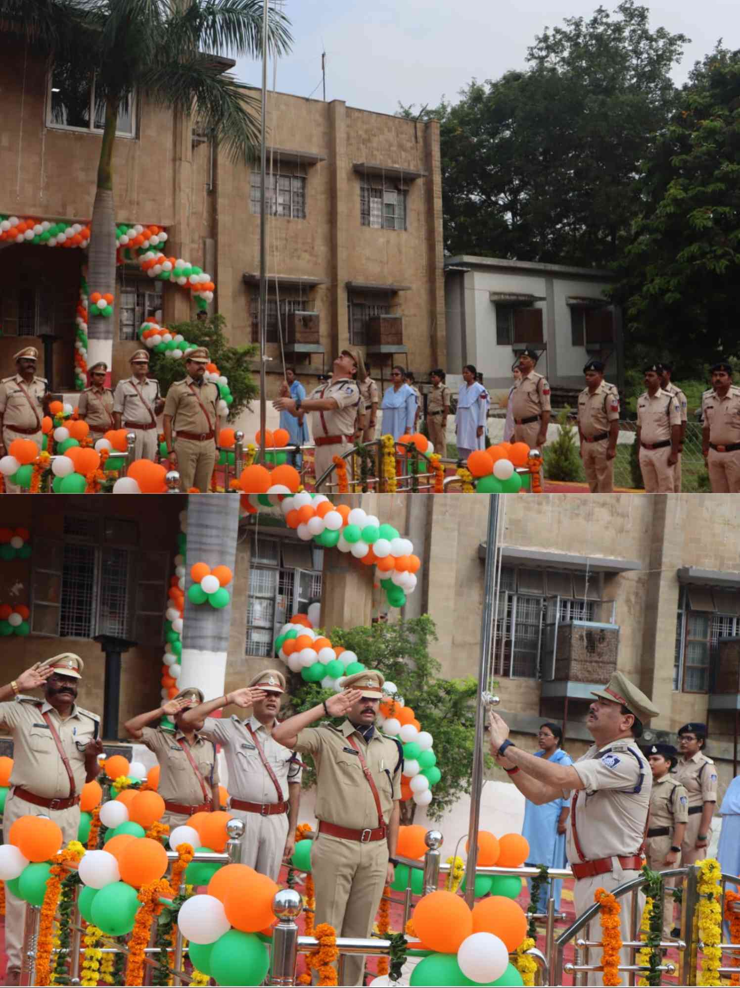 पुलिस अधीक्षक कार्यालय कटनी परिसर में किया गया ध्वजारोहण तिरंगे को दी गई सलामी