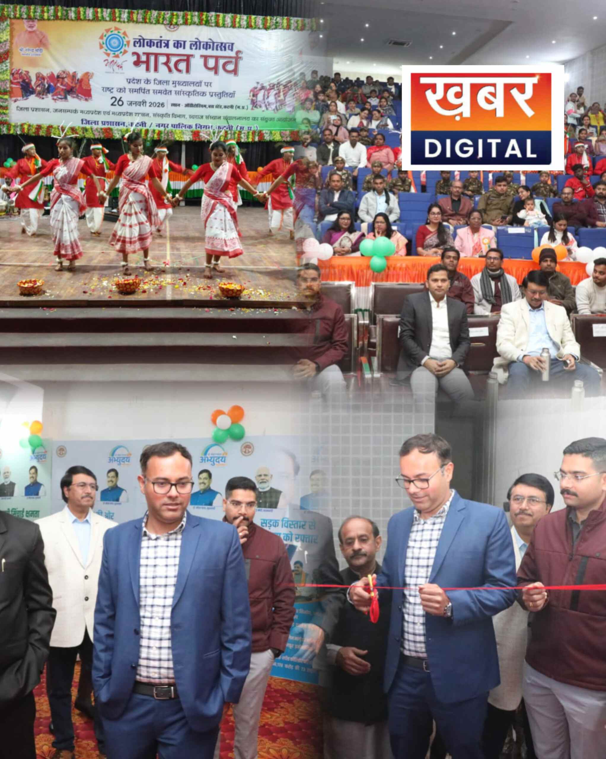 खबर डिजिटल — कटनी गणतंत्र दिवस की संध्या पर लोकतंत्र के लोक पर्व के रूप में भारत पर्व का भव्य आयोजन नगर निगम बस स्टैंड स्थित ऑडिटोरियम में किया गया। कार्यक्रम में लोक संस्कृति, शास्त्रीय नृत्य और विकास प्रदर्शनी के माध्यम से भारत की समृद्ध परंपरा और प्रगति को प्रभावी ढंग से प्रस्तुत किया गया।कार्यक्रम में सुश्री कहकशां अंजुम के नेतृत्व में 9 सदस्यीय दल द्वारा बुंदेली लोकगायन की मनमोहक प्रस्तुति दी गई, वहीं जबलपुर की स्वाति मोदी तिवारी के नेतृत्व में 15 सदस्यीय दल ने कथक नृत्य से दर्शकों को मंत्रमुग्ध कर दिया।भारत पर्व के अंतर्गत वंदे मातरम्, चित्र प्रदर्शनी के साथ-साथ जिला जनसंपर्क कार्यालय कटनी द्वारा विभिन्न विभागों की योजनाओं और कार्यक्रमों पर आधारित विकास प्रदर्शनी भी लगाई गई, जिसे नागरिकों ने खूब सराहा।कार्यक्रम में विधायक मुड़वारा संदीप जायसवाल, कलेक्टर आशीष तिवारी, पुलिस अधीक्षक अभिनय विश्वकर्मा, पीडीजे जितेंद्र कुमार शर्मा, प्रिंसिपल जज फैमिली कोर्ट भू-भास्कर यादव, डिस्ट्रिक्ट जज एसपीएस बुंदेला, सीटीएम जे.पी. चिड़ार, डिस्ट्रिक्ट रजिस्ट्रार अजय कुमार नागेश, जिला भाजपा अध्यक्ष दीपक टंडन सोनी, अपर कलेक्टर नीलांबर मिश्रा, संयुक्त कलेक्टर जितेंद्र पटेल, डिप्टी कलेक्टर प्रदीप मिश्रा, एसडीएम कटनी प्रमोद कुमार चतुर्वेदी, सहित अनेक प्रशासनिक अधिकारी एवं गणमान्य नागरिक उपस्थित रहे।कार्यक्रम का शुभारंभ मां सरस्वती के पूजन एवं देशभक्ति गीतों की भावपूर्ण प्रस्तुति से हुआ।सांस्कृतिक कार्यक्रमों के पश्चात कलेक्टर आशीष तिवारी ने जिले के विभिन्न शासकीय विभागों में उत्कृष्ट कार्य करने वाले अधिकारियों एवं कर्मचारियों को प्रशस्ति पत्र प्रदान कर सम्मानित किया।भारत पर्व का यह आयोजन लोकतंत्र, संस्कृति और विकास की भावना को सशक्त रूप से अभिव्यक्त करता नजर आया।