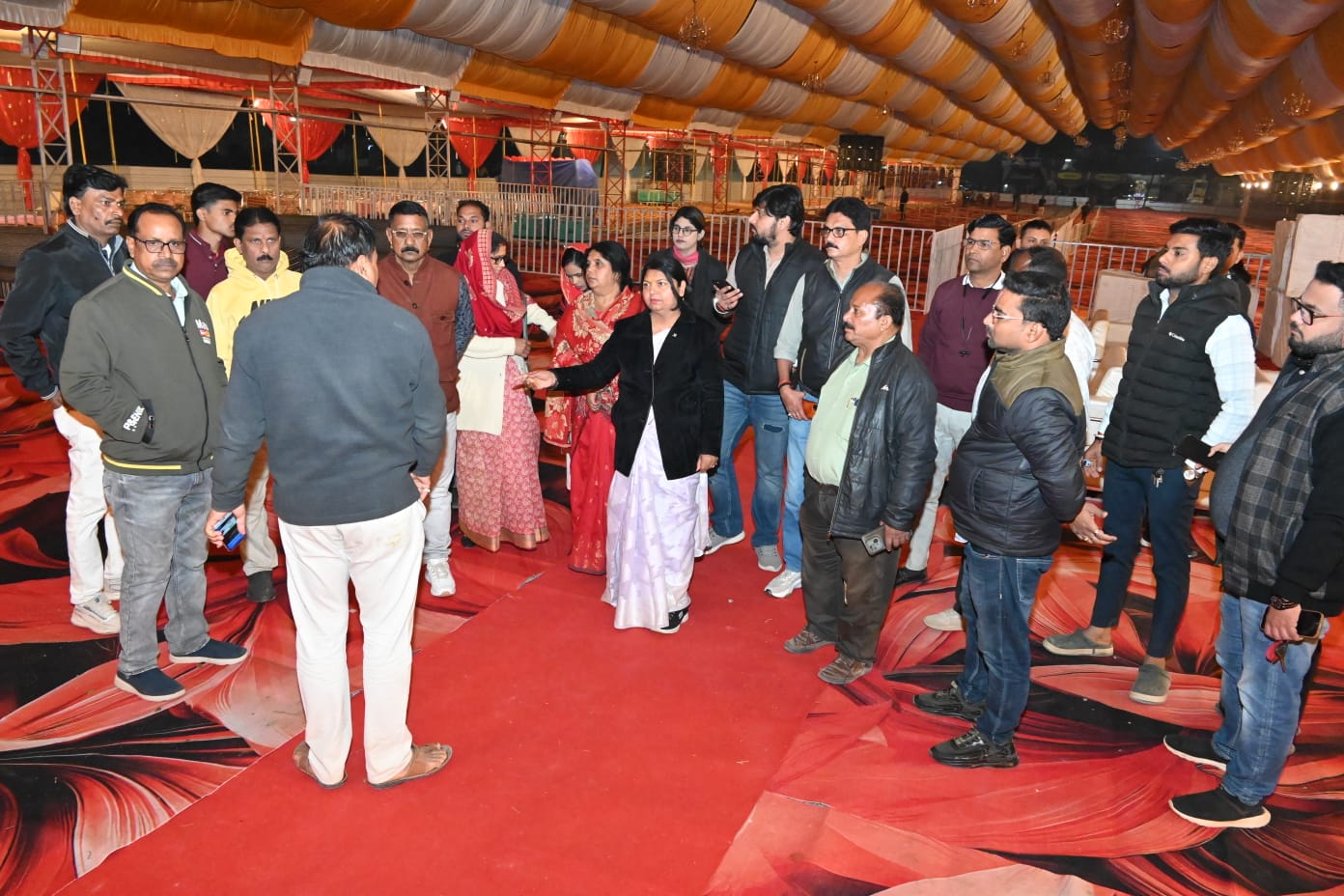 कथा पंडाल पहुँचकर नगर निगम की व्यवस्थाओं का किया निरीक्षण