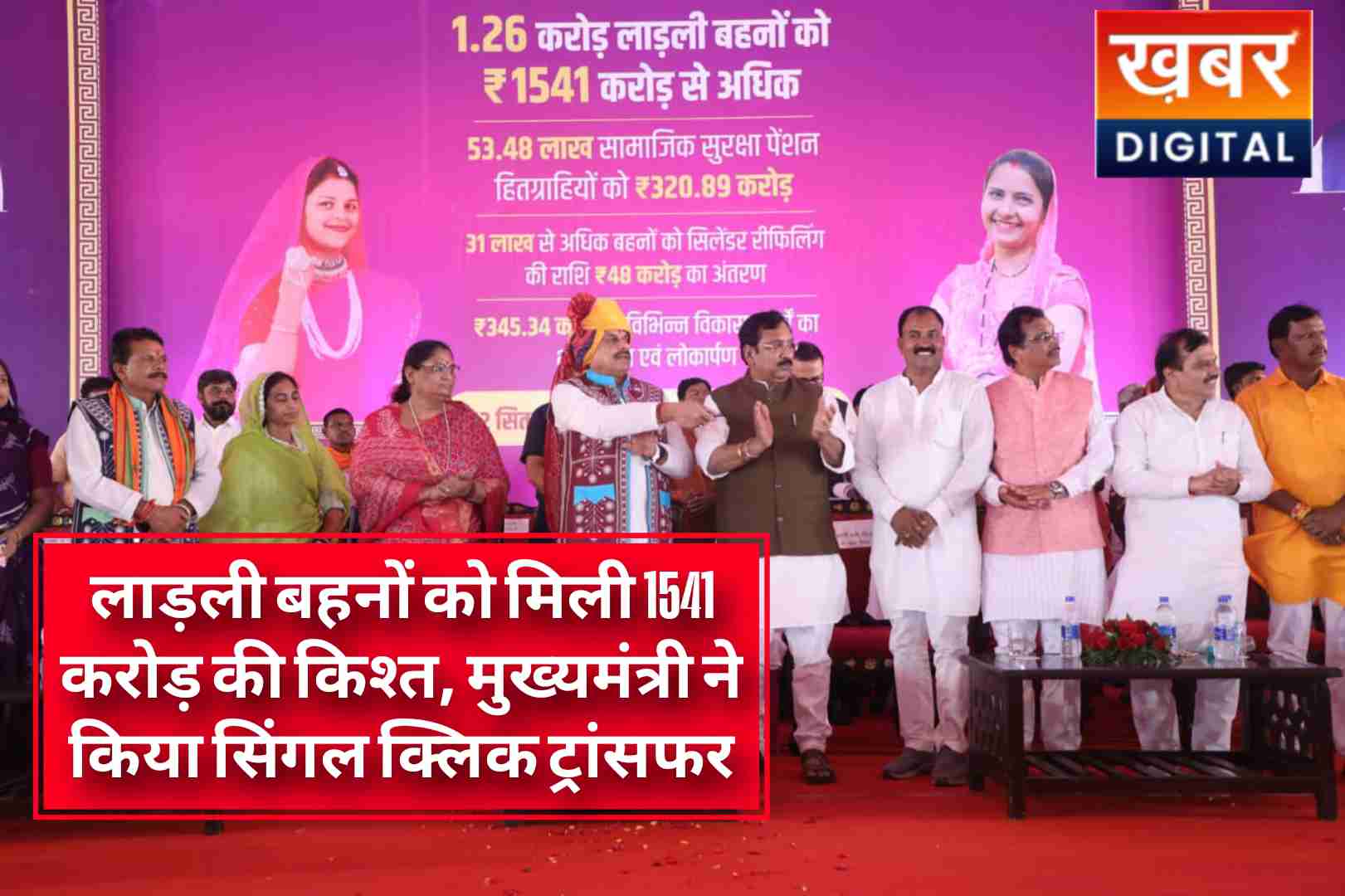पेटलावद, नावेद रजा/ खबर डिजिटल/ लाड़ली बहना योजना के तहत प्रदेश की 1.26 करोड़ से अधिक बहनों को शुक्रवार को मुख्यमंत्री डॉ. मोहन यादव ने 28वीं किश्त की 1541 करोड़ रुपये से अधिक राशि सिंगल क्लिक से उनके खातों में अंतरित की। इस राज्य स्तरीय कार्यक्रम का आयोजन पेटलावद में किया गया, जहाँ मुख्यमंत्री ने बहनों पर पुष्पवर्षा कर उनका अभिनंदन भी किया।