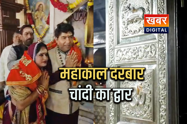 Mahakal News : उज्जैन/कमलेश जाटवा/खबर डिजिटल/ मध्यप्रदेश के उज्जैन स्थित विश्व प्रसिद्ध श्री महाकालेश्वर मंदिर के गर्भगृह के लिए कोलकाता की एक श्रद्धालु ने 25 किलो वजनी चांदी का द्वार कोलकता की निभा ने दान किया है। यह द्वार करीब 50 लाख रुपये की लागत से तैयार कराया गया है। सोमवार, 15 दिसंबर को इस चांदी के द्वार को विधि-विधान से पूजन कर गर्भगृह में लगाया गया।
