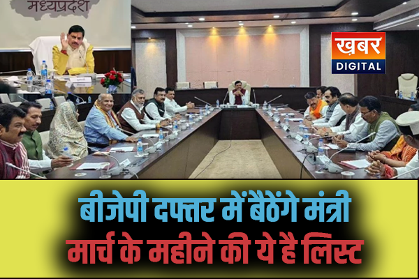 बीजेपी के प्रदेश कार्यालय में मंत्रियों और प्रदेश पदाधिकारियों से मुलाकात की शुरुआत 2 मार्च से होने वाली है। इस दिन डिप्टी सीएम जगदीश देवड़ा और राज्यमंत्री गौतम टेटवाल जनता और कार्यकर्ताओं की समस्याओं को सुनेंगे। इसके साथ ही अबकी बार कुल 17 दिन मंत्रियों की ड्यूटी लगाई गई है। इनमें नगरीय प्रशासन और संसदीय कार्य मंत्री कैलाश विजयवर्गीय समेत पीडब्ल्यूडी मंत्री राकेश सिंह, सहकारिता एवं खेल मंत्री विश्वास सारंग, पशुपालन मंत्री लखन पटेल, नगरीय प्रशासन राज्यमंत्री प्रतिमा बागरी, वन राज्यमंत्री दिलीप अहिरवार का नाम शामिल नहीं है।