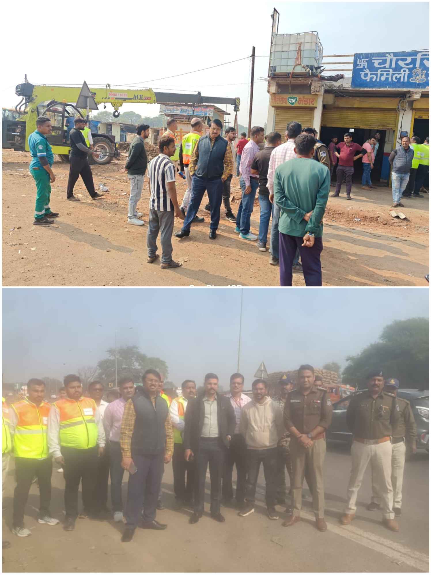 पीर बाबा बायपास पर बड़ी कार्रवाई राष्ट्रीय राजमार्ग से बाधक अतिक्रमण हटाना शुरू