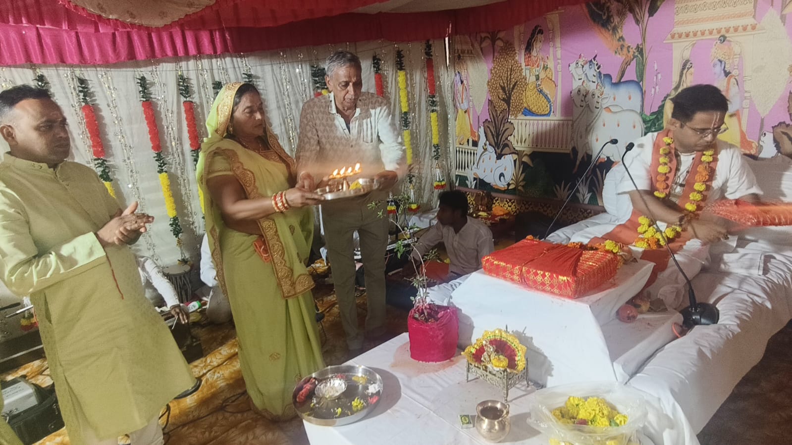 राणापुर, नावेद रजा/खबर डिजिटल/ पदमवंशी मेवाड़ राठौर तैली समाज द्वारा शनि मंदिर परिसर में आयोजित श्रीमद भागवत सप्ताह ज्ञान यज्ञ का शुभारंभ हुआ। मंदिर समिति अध्यक्ष बशी लाल नारायण जी ने आरती का लाभ लिया।कथा व्यास के रूप में श्रीधाम अयोध्या से पधारे श्री अनूप जी महाराज ने प्रथम दिवस की कथा सुनाते हुए कहा कि भागवत कथा ही जीवन में अचल आनंद प्रदान करती है।