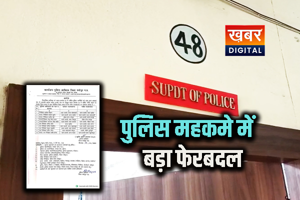एसपी सुधीर कुमार अग्रवाल ने प्रशासनिक व्यवस्था के तहत बड़ा फेरबदल किया है.कई थाना प्रभारी और चौकी प्रभारी को इधर से उधर किया है.निरीक्षक सतीश चौहान को थाना प्रभारी कोतवाली से थाना प्रभारी बड़ौदा,कार्यवाहक निरीक्षक सत्यम गुर्जर को थाना प्रभारी बड़ौदा से थाना प्रभारी कोतवाली, कार्यवाहक निरीक्षक सतीश दुबे को पुलिस लाइन से थाना प्रभारी मानपुर,कार्यवाहक निरीक्षक पप्पू यादव को मानपुर थाना प्रभारी को पुलिस लाइन श्योपुर,कार्यवाहक निरीक्षक महाराज सिंह वघेल थाना प्रभारी अजाक को महिला थाना प्रभारी,इसके अलावा उप निरीक्षक धर्मेंद्र मालवीय थाना प्रभारी रघुनाथपुर को थाना प्रभारी आवदा, उप निरीक्षक राहुल रघुवंशी थाना प्रभारी आवदा को थाना प्रभारी देहात, उप निरीक्षक प्रदीप तोमर कोतवाली को चौकी प्रभारी दुर्गापुरी, कार्यवाहक उप निरीक्षक शशि तोमर देहात थाना प्रभारी को रघुनाथपुर थाने की कमान सौंपी गई है.