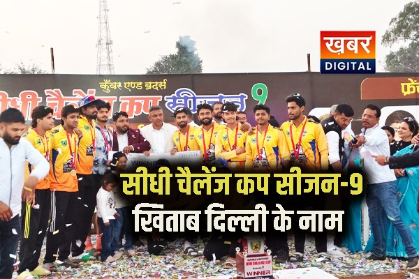 सीधी/बृजेश पांडेय/खबर डिजिटल/ अखिल भारतीय आमंत्रण क्रिकेट टूर्नामेंट कुंवर एंड ब्रदर्स सीधी चैलेंज कप सीजन-9 का फाइनल मुकाबला छत्रसाल स्टेडियम में खेला गया, जिसमें भूमि एसोसिएट्स दिल्ली ने शानदार प्रदर्शन करते हुए खिताब अपने नाम किया। फाइनल में दिल्ली ने समय प्रेस भदोही (उत्तर प्रदेश) को बड़े अंतर से हराया।
