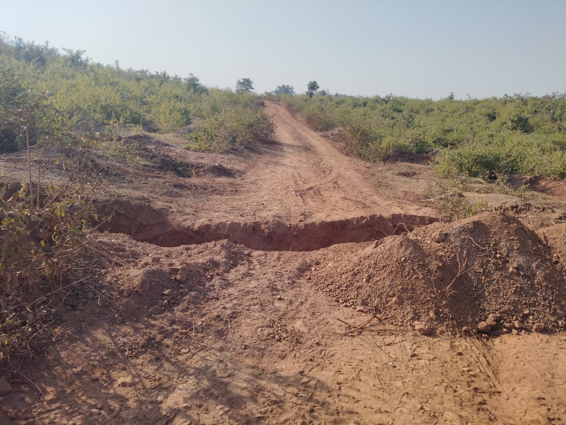 भूला–टिकरिया में खनन माफिया की दबंगई, जांच रोकने जेसीबी से खुदवा दी रास्ते में गहरी नाली