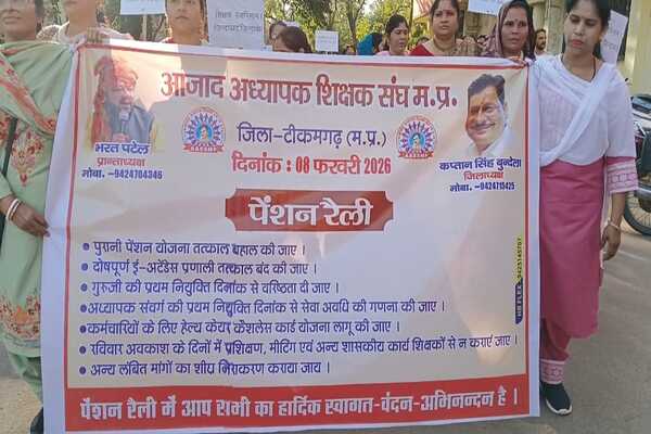 टीकमगढ़/सुबोध पाठक/ खबर डिजिटल/ मध्यप्रदेश में अध्यापक शिक्षक संवर्ग अपनी लंबित मांगों को लेकर एक बार फिर लामबंद हो गया है। आजाद अध्यापक शिक्षक संघ के प्रांताध्यक्ष भरत पटेल के आह्वान पर प्रदेशव्यापी आंदोलन के तहत आज टीकमगढ़ जिले में शिक्षकों ने अपनी एकता और आक्रोश का प्रदर्शन किया। पुरानी पेंशन बहाली और ई-अटेंडेंस जैसे गंभीर मुद्दों को लेकर सैकड़ों की संख्या में शिक्षकों ने रैली निकालकर मुख्यमंत्री के नाम ज्ञापन सौंपा।