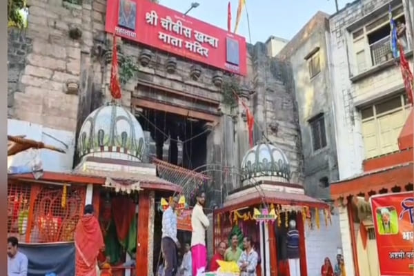 ​सुबह 8 बजे ढोल-नगाड़ों की थाप के बीच प्रसिद्ध चौबीस खंबा माता मंदिर में महाआरती का आयोजन हुआ। यहां अखाड़ा परिषद के राष्ट्रीय अध्यक्ष रवींद्र पुरी महाराज (निरंजनी अखाड़ा) ने देवी महालया और महामाया का पूजन कर मदिरा अर्पित की। ऐतिहासिक मान्यता है कि प्राचीन काल में राजा विक्रमादित्य स्वयं यह पूजा करते थे। वर्तमान में चैत्र नवरात्रि में यह दायित्व अखाड़ा परिषद अध्यक्ष और अश्विन नवरात्रि में जिला कलेक्टर निभाते हैं।