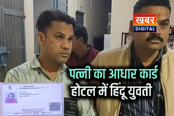 घटना शुक्रवार की है, जहां गधा पुलिया स्थित हकीमी होटल में आगर निवासी शाकिर हुसैन, पिता मेहराजउद्दीन मंसूरी, एक 30 वर्षीय हिंदू युवती के साथ पहुंचा था, शाकिर ने कमरा नंबर 153 लेने के लिए अपनी पत्नी रियाना मंसूरी का आधार कार्ड इस्तेमाल किया था।