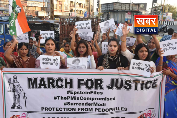 भोपाल/सुनील बंशीवाल/खबर डिजिटल/ अखिल भारतीय महिला कांग्रेस की राष्ट्रीय अध्यक्ष अलका लांबा एवं मध्यप्रदेश महिला कांग्रेस की प्रदेश अध्यक्ष रीना बोरासी सेतिया के निर्देशानुसार भोपाल के रोशनपुरा चौराहा पर जिला महिला कांग्रेस कमेटी द्वारा शांतिपूर्ण धरना-प्रदर्शन आयोजित किया गया। यह विरोध प्रदर्शन एपस्टीन फाइल्स से जुड़ी उन बेटियों और महिलाओं की रहस्यमयी परिस्थितियों में हुई मौतों के खिलाफ न्याय की मांग को लेकर किया गया।