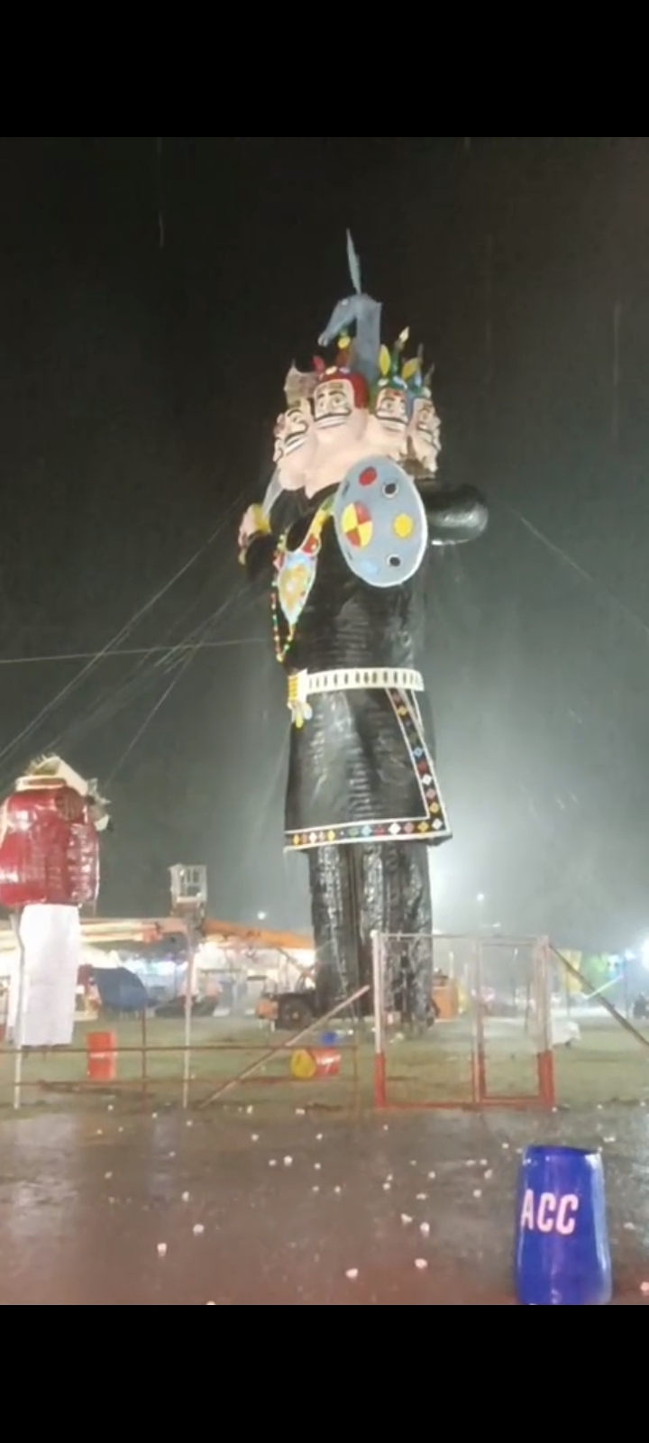 HomeUncategorizedबारिश में भीगा रावण का पुतला, दहन पर संकट के बादल